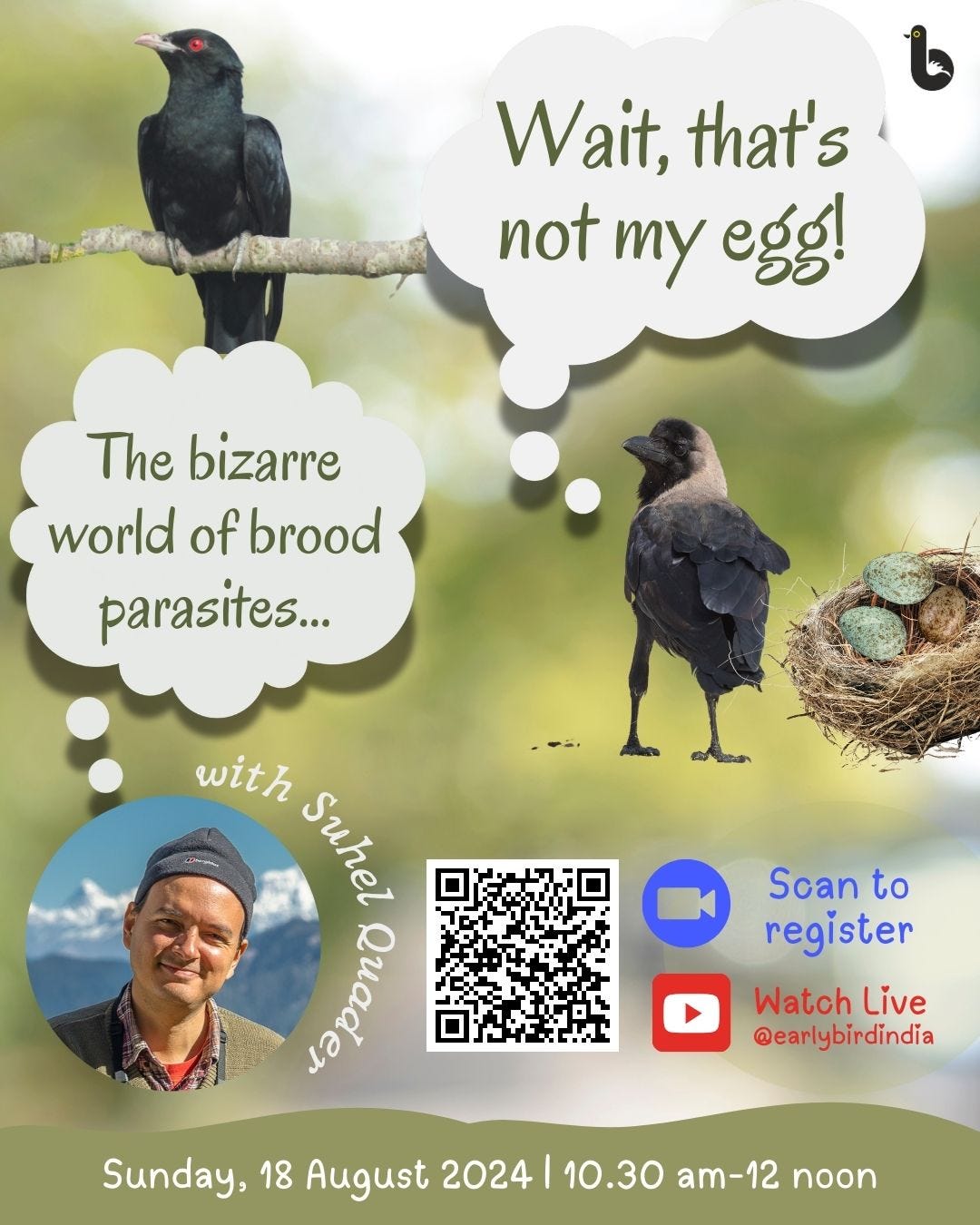 Youtube , IndiaSome birds are naughty, and lay their eggs in the nest of other species. Why do they do this? How do they manage to succeed? Can't the host species defend itself? You can explore these questions and more in this interactive session with Suhel Quader. "Wait, that's not my egg!: the bizarre world of brood […]