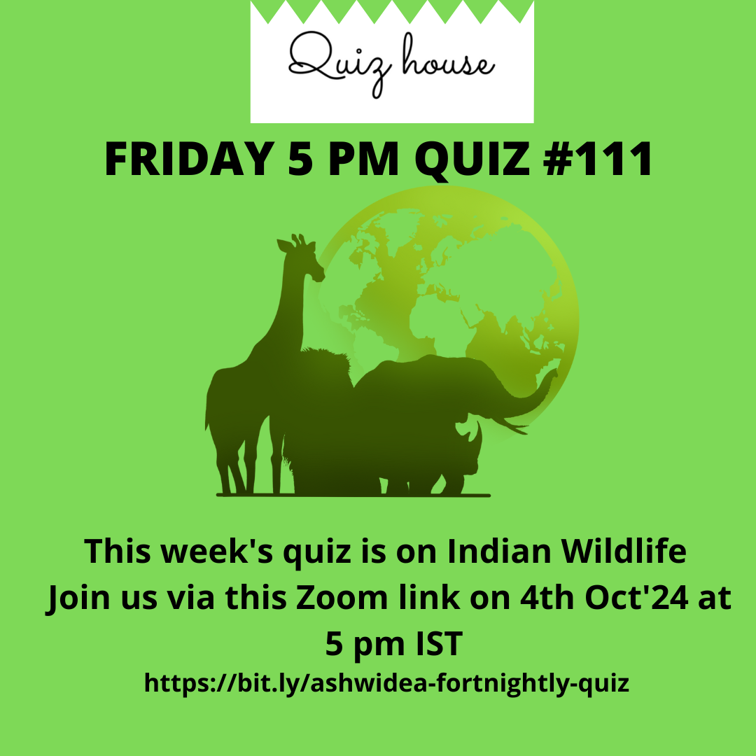 Zoom WebinarCelebrate National Wildlife Week with a fun quiz on Indian wildlife. Join using the Zoom link on 4th Oct at 5 pm to answer some Qs and share some trivia about our fellow inhabitants. Don't forget you can be on the Quiz House weekly leaderboard and may win the Oct quiz by being a regular at […]