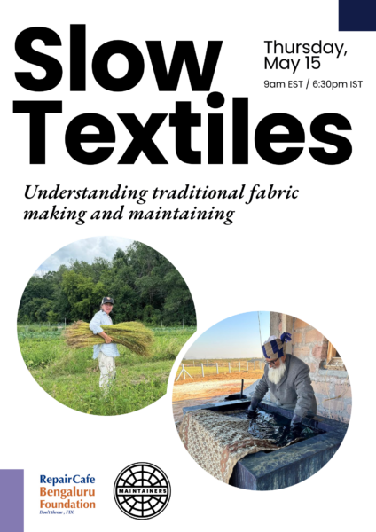 Hosted as a collaboration between Repair Cafe Collective India and The Maintainers to explore the making and maintaining of Ajrakh and Linen – through the lens of two traditions and places.
