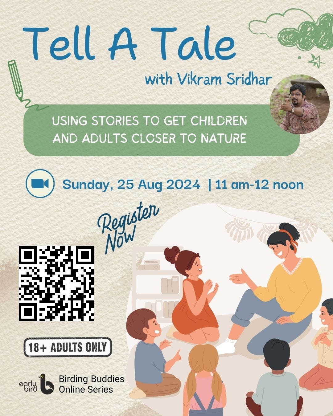 Remember those magical bedtime stories that took us on wild adventures, where animals could talk and trees had secrets? Stories always inspire our love of nature, from talking owls to clever crows to mysterious forest spirits. Join Tell a Tale with Vikram Sridhar, and learn how to use stories to bring kids (and grown-ups!) closer to nature.