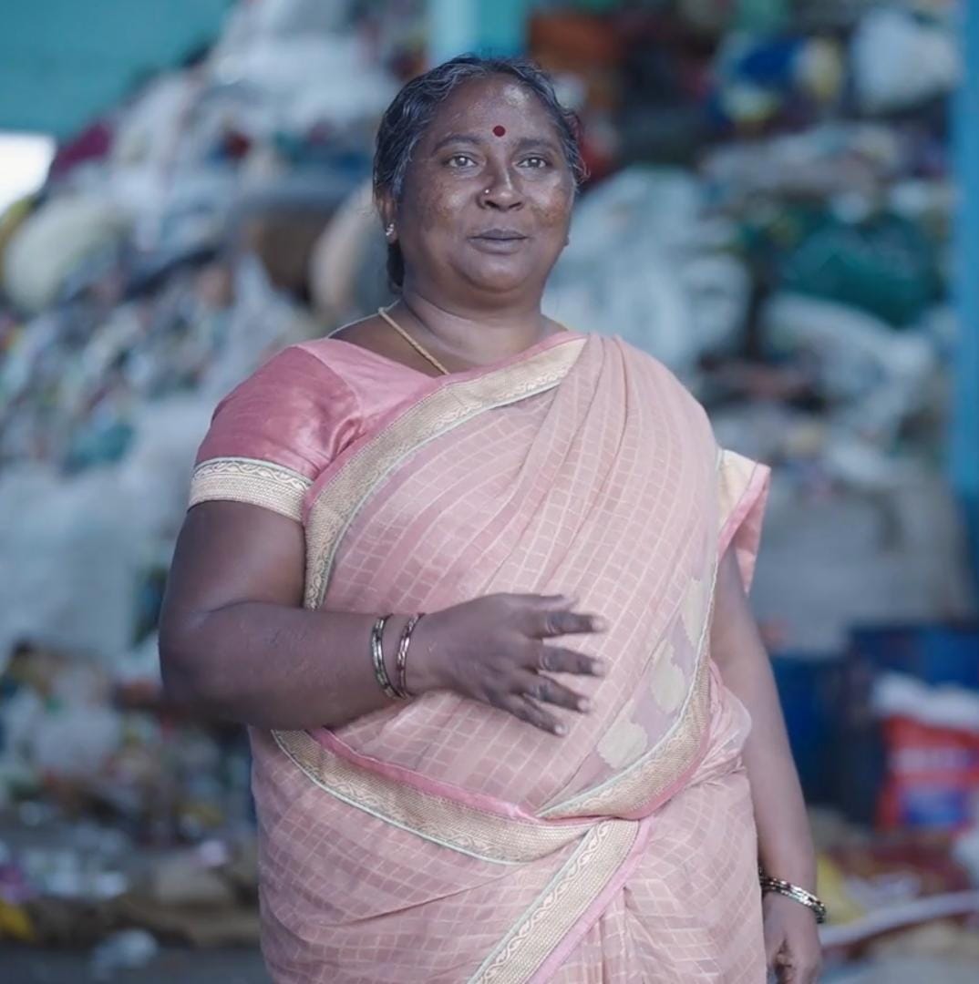 Indira is a waste picker in Bengaluru, who started the family business of paper collection at the age of 10. Her extensive route covers major areas like Majestic-KR Market and Lalbagh, where she efficiently manages the collection of diverse materials, including metal, organic waste, and paper.